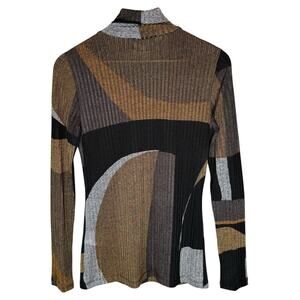 DKNY Metallic Rib Knit Turtleneck Mod Geo Print, size Small