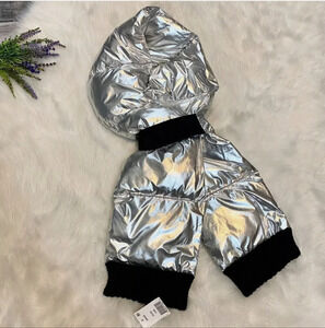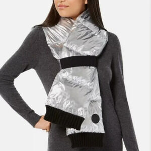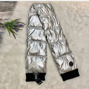 DKNY Metallic Silver Quilted Puffer Scarf NEW Modern Contemporary Winter…