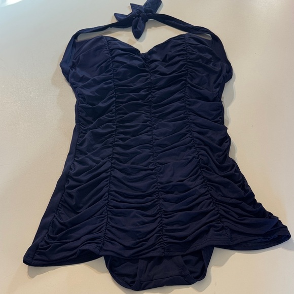 DKNY Midnight Blue Pinup Style Rouched One Piece Swimsuit