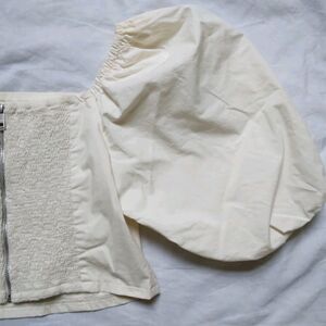 DKNY Milkmaid Style Cottage Core Ivory Peasant Blouse Puff Sleeve Womens Small. Spot on right sleeve.