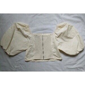 DKNY Milkmaid Style Cottage Core Ivory Peasant Blouse Puff Sleeve Womens Small