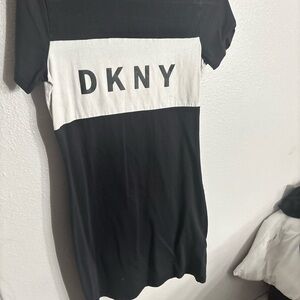 Chic DKNY dress with bold logo. Classic black and white design. Ideal for everyday wear.