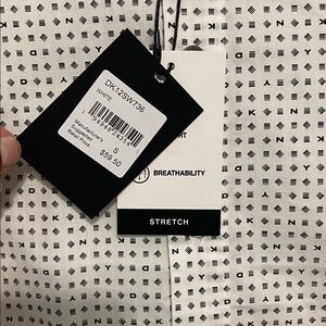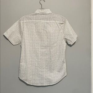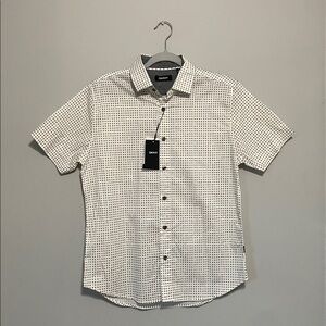 Chic DKNY shirt with a monochrome pattern. Features short sleeves and a classic button-up style.
