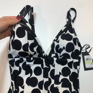 DKNY NAVY MULTI DOT Mesh-Trim One-Piece Swimsuit