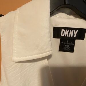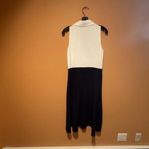 Great work dress, very comfortable. White and navy with some button detail. Length is past the knee on me I am 5’ 5” Size 4 but runs a bit large.