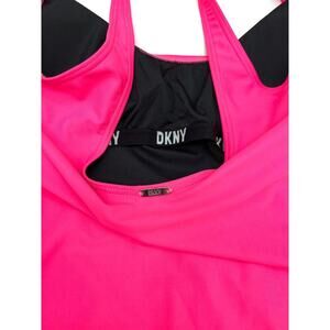 DKNY NEON PINK Ruched Mesh-Contrast One-Piece Swimsuit 4 NWT $98 The color is best represented in the first 4 photos.