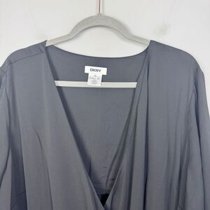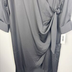 Gorgeous black wrap dress by DKNY. V-neck line. Long sleeves with button cuffs. Midi length. Buckle at the wrap. Brand NWT. Women’s size 18 W.
