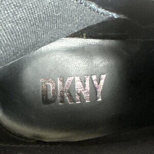 DKNY Dottie Women's 10M Black Leather Buckle Faux Pearl Heel Combat Boots NWOB
