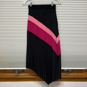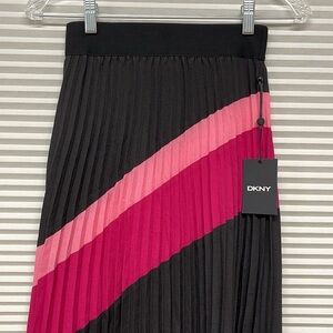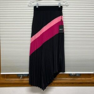DKNY NWT Black Pink Pleated Asymmetrical Hem Midi Skirt Size XXS