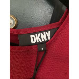 DKNY NWT Mesh Short Sleeve Red Shirt Blouse, Size Medium, MSRP $69