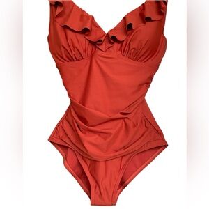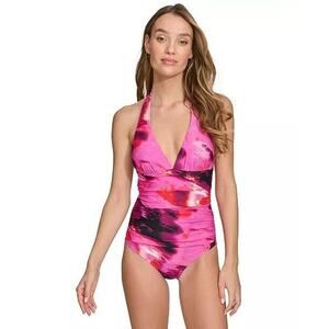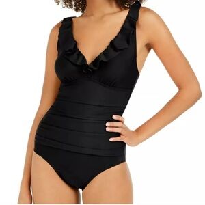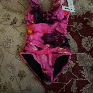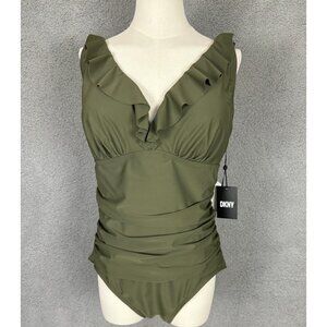 DKNY NWT Ruffle Plunge Underwire Tummy Control One-Piece Swimsuit Size S/P