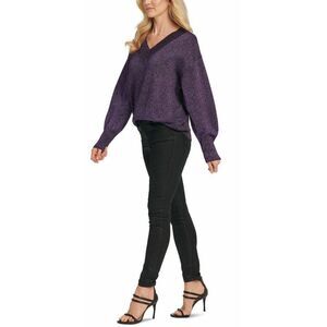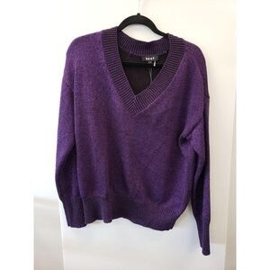 DKNY NWT Purple Glitter Sparkle V-Neck Sweater Top