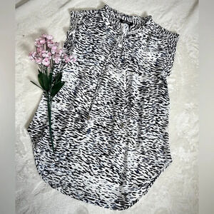 DKNY Navy & Black Printed Short Sleeve Blouse - Small