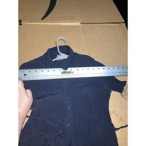 DKNY Navy Blue Midi Dress, Short Sleeve Faux Wrap, Collared Button Dress Size 10