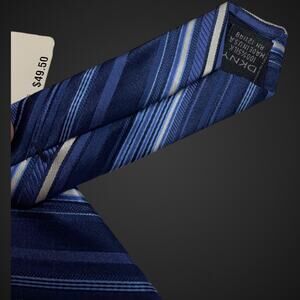 DKNY Neck Tie Blue Stripe 100% Silk Designer NWT $49