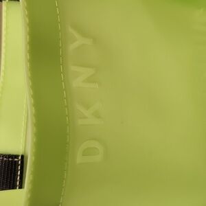 Bright neon green tote bag by DKNY. Features sturdy black handles. Perfect for a bold statement. Excellent condition!