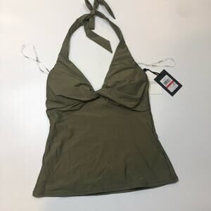 DKNY OLIVE Twist-Front Halter Tankini swim Top