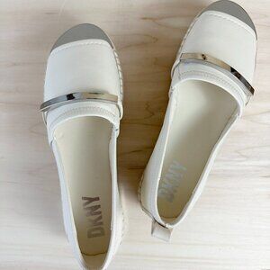 DKNY Off White Leather Platform Loafers Silver Details 7