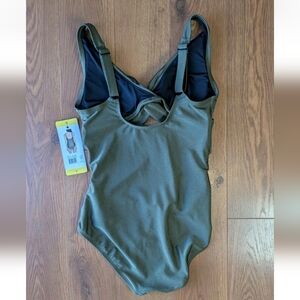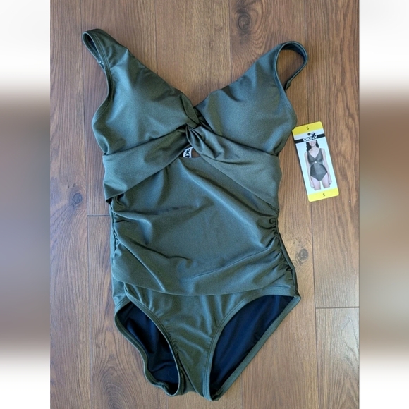 DKNY One Piece Key Hole Twist Front Swimsuit Green Small NWT