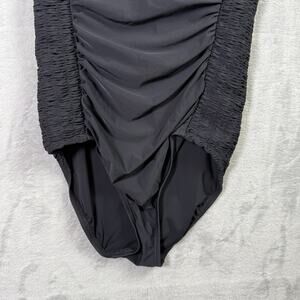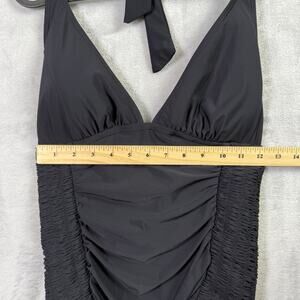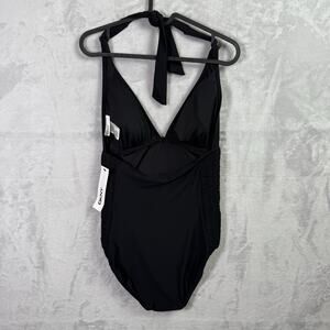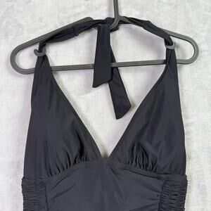 DKNY One Piece Swimsuit Women's 10 Black Scrunch Slim Sides V Neck Tie Halter