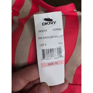 DKNY One-Shoulder Coral & Beige Striped Swimsuit Size 10 Nylon/Spandex