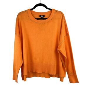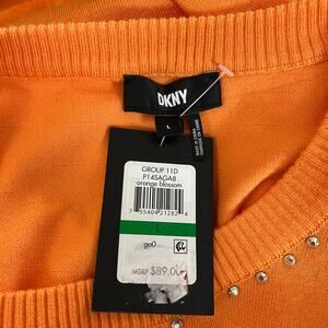 DKNY Orange Blossom Crewneck Stud Trim Split Hem Oversized Sweater Large NWT