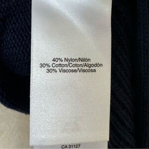 Fabric: nylon, cotton, viscose blend. This sweater is in excellent condition and has no flaws. Cool and versatile! Perfect to pair up with your favorite jeans, skirts, shorts and tall boots or casual shoes or wear under a trench coat or denim jacket!