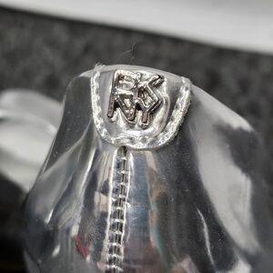 Silver, Rectangular heel, reflective high heels. Metal branding on back. Size 5.5