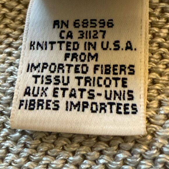 DKNY Petite Light Gray Metallic Long Sleeve Sweater with Open Knit Hem. Size S.