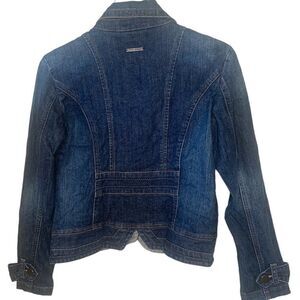 DKNY Petite Military Denim Jean Jacket Small Blue Button Stitching Y2K 90s 80s