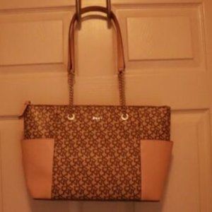 DKNY Pink Gigi Logo-Print Coated Canvas Tote w/ DKNY Interior.