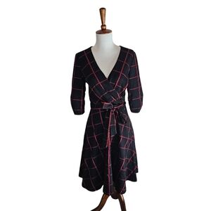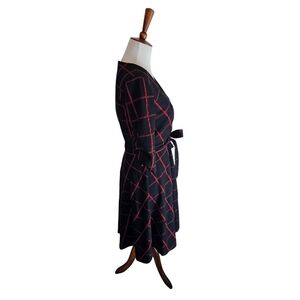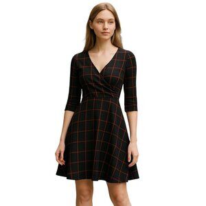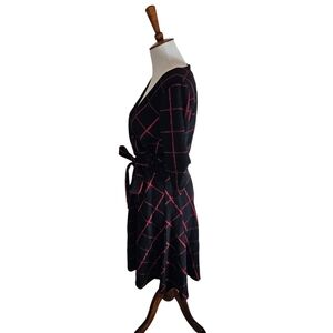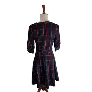 DKNY Plaid Elbow Sleeve Sleeve Fit and Flare Black Red 4 NWT