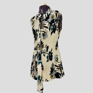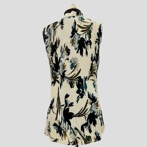 DKNY Pleated Floral-Print Sleeveless Blouse Size L