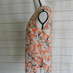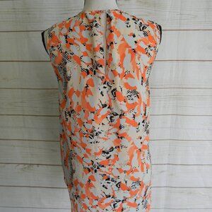 DKNY Pleated Top Sz S Keyhole ORANGE/MULTI Sleeveless Stretch Geometric CAREER