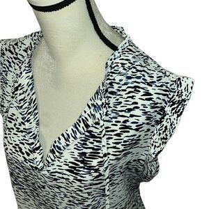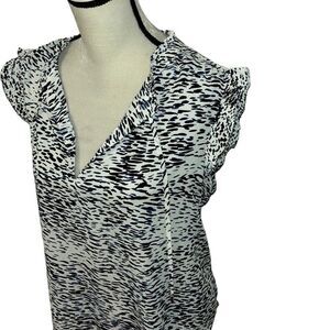 DKNY Pleated V-Neckline Sleeveless Blouse with Neck Tassels Size XL/16