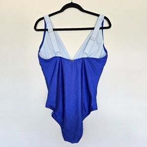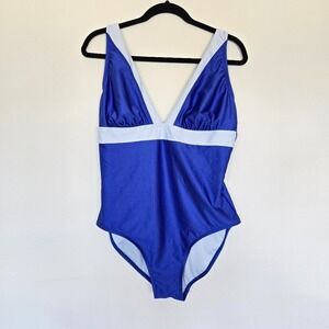DKNY Plunging Blue Colorblock Swimsuit Size 16 Summer Vacation Minimalist Chic