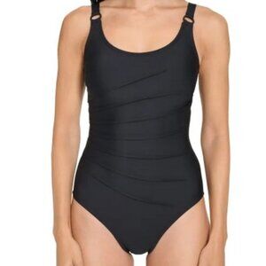 Add a vintage touch that's as modern as ever in this fetching one-piece swimsuit from DKNY.