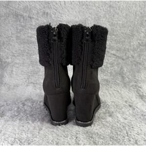 DKNY Powell Wedge Bootie Women's Black Ankle Boot Faux Shearling Size 6.5