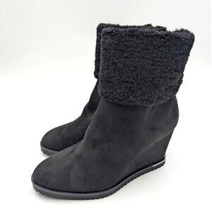DKNY Powell Wedge Booties Round Toe Back Zip Women's Black Size US7M EU37.5B