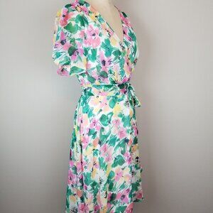 DKNY Pretty Green Floral Chiffon Faux Wrap Dress with Matching Tie Belt * Size 4
