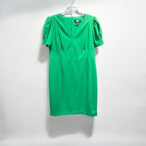 DKNY Puff-Sleeve V Neck Sheath Dress Vibrant Kelly Green Women's Size 16
