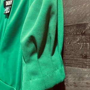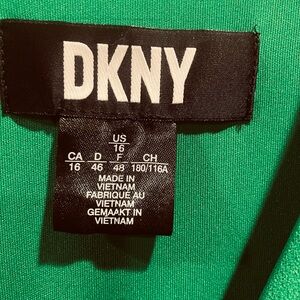 This DKNY puff-sleeve V-neck sheath dress in Kelly Green is a stylish and versatile option for women in size 16. Made from a blend of polyester and spandex, the knee-length dress features a flattering V-neckline, puff sleeves, and a convenient zip closure. Perfect for both party/cocktail and workwear occasions, the lightweight dress is ideal for the spring and summer seasons. With its classic sheath style and solid Kelly green color, this dress is sure to make a statement and turn heads wherever you go. This dress is in excellent condition.