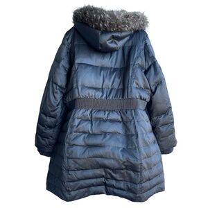 DKNY Puffer Hooded Jacket Plus 1X Gray Buckle Clasp Belt Cozy Fleece Lined