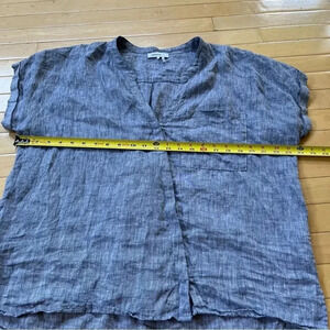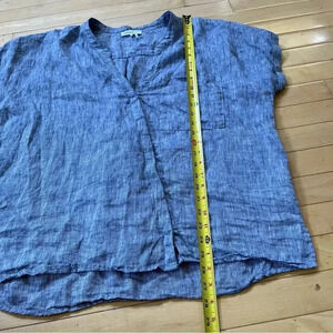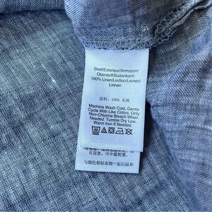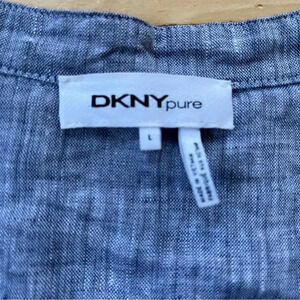 DKNY Pure 100% Linen Shirt Womens Size Large L Short Sleeve Blue Lagenlook