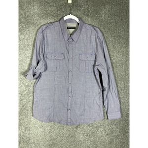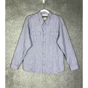 DKNY Purple Button Up Shirt Mens Size Large Roll Tab Long Sleeve Chest Pockets Epaulette