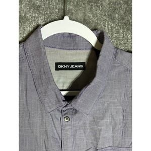 DKNY Purple Button Up Shirt Mens Size Large Roll Tab Long Sleeve Chest Pockets