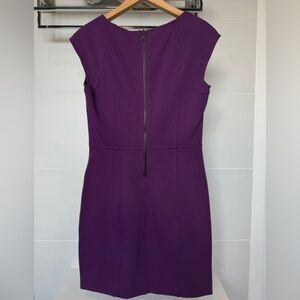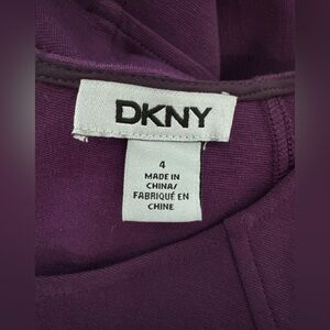 Elegant and timeless DKNY sheath dress in a deep purple hue. Features cap sleeves, a flattering tailored silhouette, and a back zip closure. Perfect for work, events, or evening wear. Size 4. The structured yet stretchy fabric ensures both comfort and polish. Gently worn and in excellent condition.