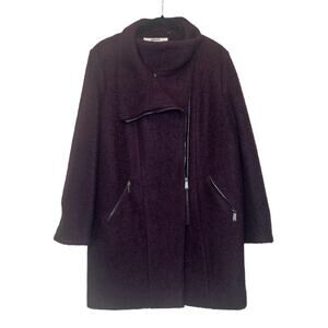 DKNY Purple Wool Blend Jacket Coat Shiraz Asymmetrical Zip Double Breasted Large