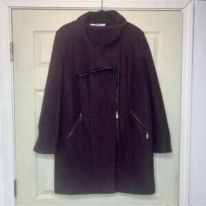 DKNY Purple Wool Blend Jacket Coat Shiraz Asymmetrical Zip Double Breasted Large