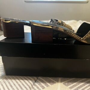 With sophisticated style and a comfortable heel, DKNY's dressy slip-on sandals will become your favorite day-to-night look.